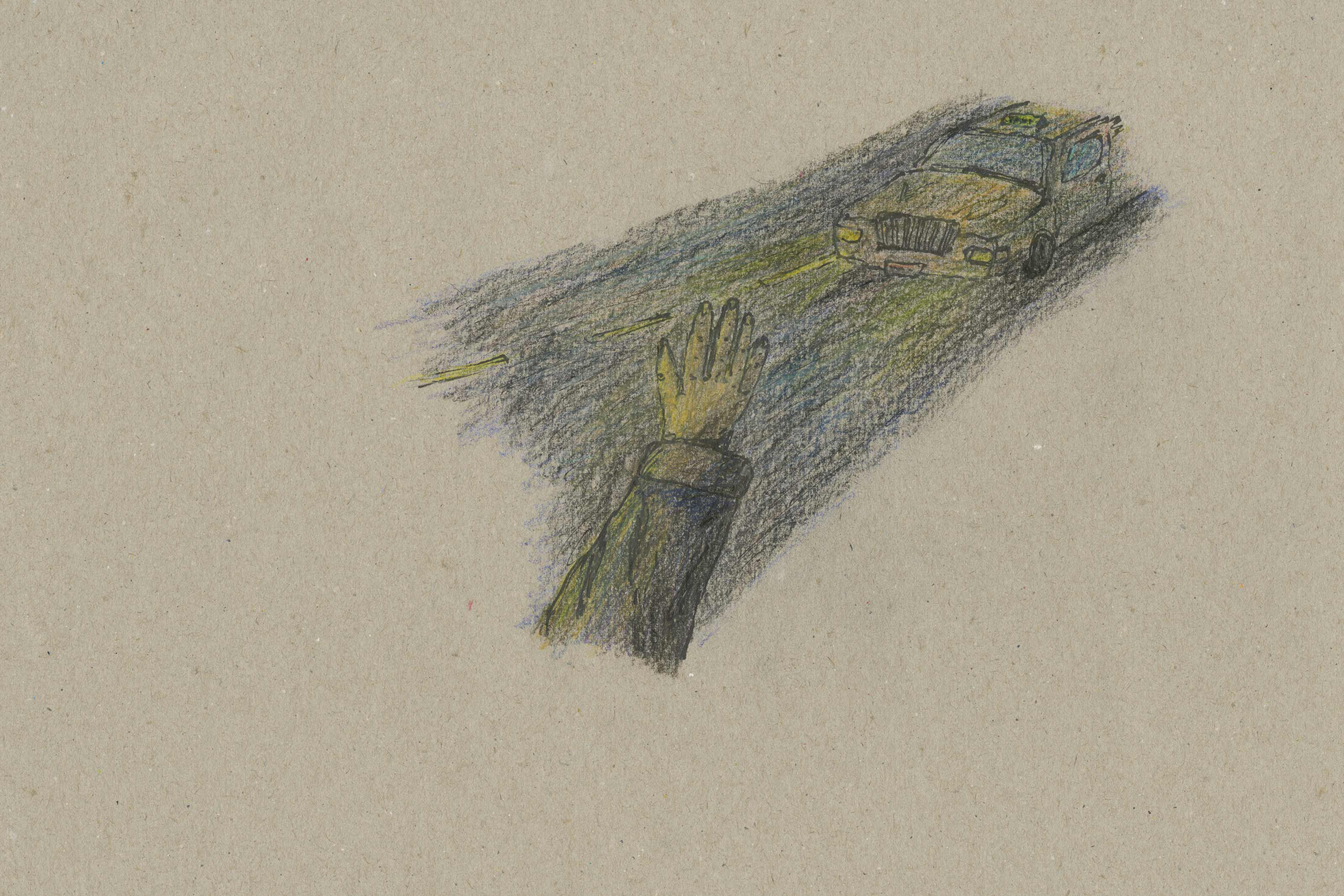 Mittels Überlagern von dünnen Farbstiftschichten tastete ich mich laufend an die Farbstimmung heran. Dabei legte ich besonderen Wert auf die Erscheinungsfarben. Um dem schwindenen Kontrast entgegenzuwirken und die Lesbarkeit trotz den diffusen Lichtverhältnissen zu gewährleisten, arbeitete ich mittels schwarzem Fineliner gezielt an den Konturen und verdeutlichte die Struktur der Objekte.